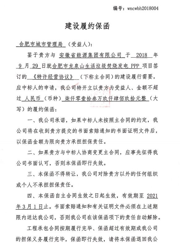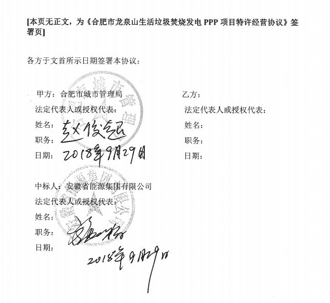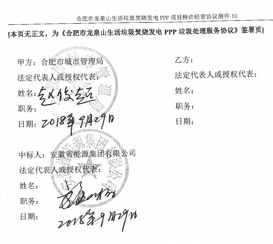 合同名稱:合肥市龍泉山生活垃圾焚燒發(fā)電PPP