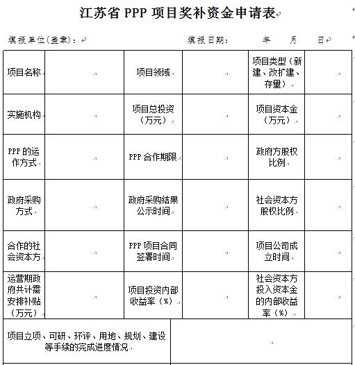 附表:江蘇省PPP項目獎補資金申請表