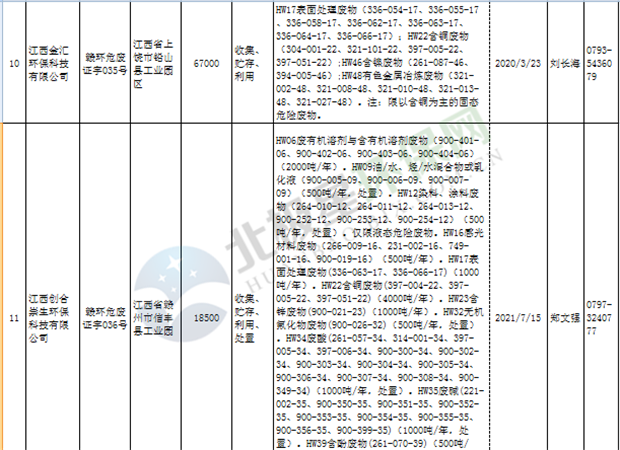 江西省臨時危險廢物經(jīng)營許可證持證單位名單(省廳審批) 10月09日更新