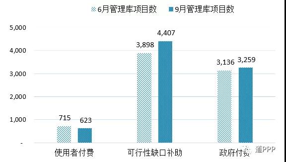 億元,分別占管理庫的43.5%和50.5%。京津冀累計(jì)項(xiàng)目總數(shù)423個(gè)、投資額7,822億元,分別占管理庫的5.1%和6.4%;累計(jì)落地項(xiàng)目總數(shù)216個(gè)、投資額4,763億元,分別占管理庫落地項(xiàng)目的5.3%和7.5%?;貓?bào)機(jī)制方面,三季度使用者付費(fèi)類項(xiàng)目?jī)魷p項(xiàng)目92個(gè)、投資額1,435億元;可行性缺口補(bǔ)助類項(xiàng)目新增項(xiàng)目509個(gè)、投資額5,132億元;政府付費(fèi)類項(xiàng)目新增123個(gè),投資額凈減227億元。管理庫累計(jì)使用者付費(fèi)類項(xiàng)目623個(gè)、投資額9,150億元;累計(jì)可行性缺口補(bǔ)助(即政府市場(chǎng)混合付費(fèi))類項(xiàng)目4,407個(gè)、投資額8.0萬億元;累計(jì)政府付費(fèi)類項(xiàng)目3,259個(gè)、投資額3.4萬億元。