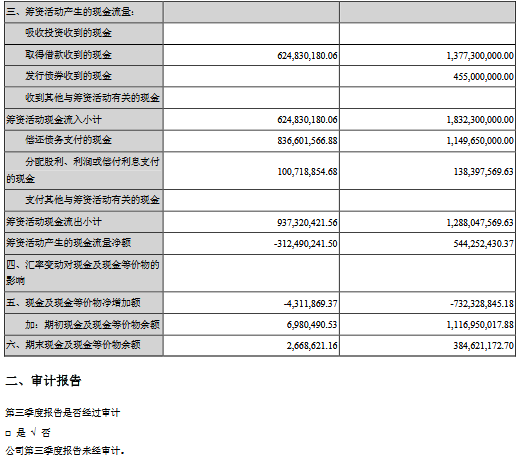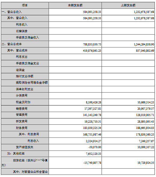 公告顯示,公司前三季度營業(yè)收入584,091,258.33元,同比減少52.62%,歸屬上市公司股東的凈利潤-209,729,620.45元,同比減少5737.61%。