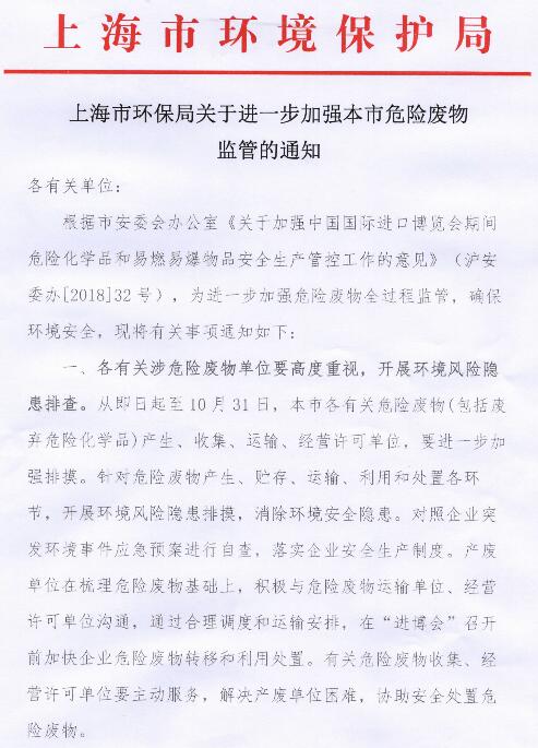 日前,上海環(huán)保局發(fā)布關(guān)于進(jìn)一步加強(qiáng)本市危險廢物新聞專題">危險廢物監(jiān)管的通知,詳情如下: