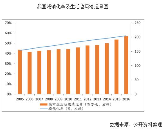 從生活垃圾無害化處理情況來看,若考慮無害化處理率更低的縣鎮(zhèn)及農(nóng)村,則城鎮(zhèn)生活垃圾歷史堆存量的數(shù)字將更為龐大。要緩解當(dāng)前垃圾圍城的壓力,改善城鎮(zhèn)人居生活環(huán)境,加大無害化處理設(shè)施建設(shè)投入是必然要求,而這也將為垃圾處理市場的發(fā)展帶來廣闊的空間。
