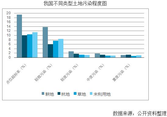 從土地類型來看,耕地的點位超標(biāo)率最高,達(dá)到了19.4%,而其他三種土地的超標(biāo)率略高于10%的水平。耕地直接涉及到我國的食品安全問題,這也是近年來土地污染問題越來越受到群眾關(guān)心的重要原因。