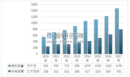 2010-2017年我國生物質發(fā)電裝機容量及發(fā)電規(guī)模情況