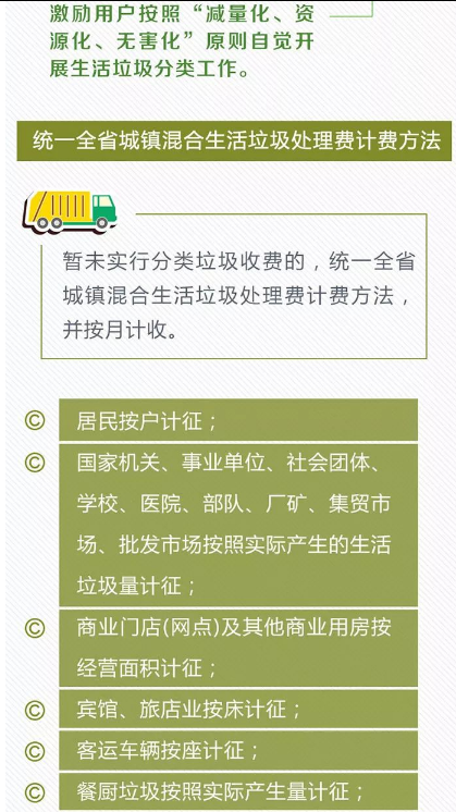 到2020年底前各市、縣(市、區(qū))要全面建立,覆蓋到所有建制鎮(zhèn)的生活垃圾處理收費(fèi)制度,按照《通知》,對非居民用戶和具備條件的居民用戶實(shí)行分類垃圾與混合垃圾差別化收費(fèi)政策,激勵用戶按照“減量化、資源化、無害化”原則,自覺開展生活垃圾分類工作,促進(jìn)垃圾源頭減量,推動可再生資源回收利用。