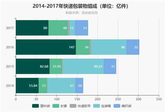快遞業(yè)務(wù)的繁榮在促進(jìn)經(jīng)濟(jì)飛速發(fā)展的同時(shí)也產(chǎn)生了巨大的環(huán)保負(fù)擔(dān)。其中最突出的問(wèn)題就是快遞包裝所帶來(lái)的資源浪費(fèi)以及環(huán)境污染。一件普通的快遞,根據(jù)商品種類的不同,一般會(huì)有塑料袋、封套、快遞膠帶、包裝箱以及編織袋五大類包裝。根據(jù)國(guó)家郵政局統(tǒng)計(jì),2016年我國(guó)快遞包裝塑料袋使用量達(dá)147億,包裝箱達(dá)88億,快遞膠帶3.3億卷。在節(jié)能減排的號(hào)召下2017年?duì)顩r有所改觀,但形式依舊嚴(yán)峻。