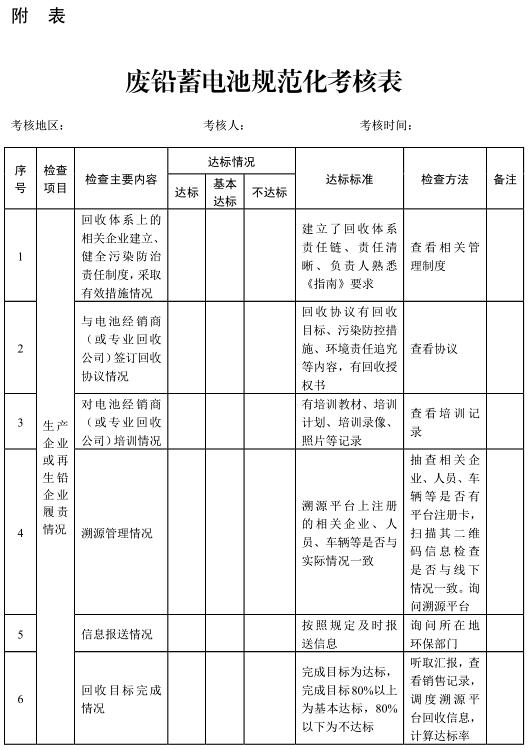 (三)加強(qiáng)督導(dǎo)考評(píng)。建立健全督導(dǎo)檢查、考核評(píng)價(jià)機(jī)制,加強(qiáng)對(duì)四個(gè)試點(diǎn)市廢鉛蓄電池回收處理體系建設(shè)情況的檢查考核,發(fā)現(xiàn)問題及時(shí)督查督辦,不斷修訂、完善制度,推動(dòng)建立規(guī)范、高效、暢通的回收利用體系。