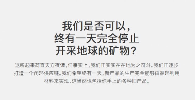 新聞總是要相關(guān)聯(lián)來(lái)看,就在一周左右前,蘋(píng)果公司發(fā)布了 2017 年度的環(huán)境責(zé)任報(bào)告,這份報(bào)告顯示,蘋(píng)果正在采取各項(xiàng)措施減少產(chǎn)品材料對(duì)于礦業(yè)的依賴,逐漸停止對(duì)新資源的開(kāi)采,并且將成為第一個(gè)承諾只使用回收金屬、稀土和其它礦產(chǎn)資源的大型科技公司。在報(bào)告中蘋(píng)果表示,公司計(jì)劃打造一個(gè)封閉的循環(huán)制造系統(tǒng),通過(guò)回收資源進(jìn)行金屬和稀土元素的重新利用實(shí)現(xiàn)對(duì)環(huán)境的貢獻(xiàn)。