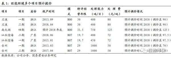 2)PPP降溫后,行業(yè)渡過低價(jià)競(jìng)爭(zhēng)階段,新項(xiàng)目回報(bào)率提升,老項(xiàng)目處理費(fèi)提價(jià)。