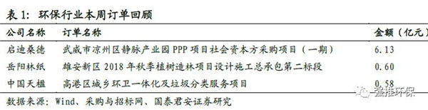 3.本周環(huán)保上市公司新增訂單回顧