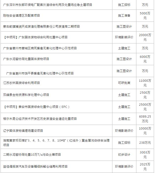 11月份全國(guó)擬在建固體廢棄物項(xiàng)目