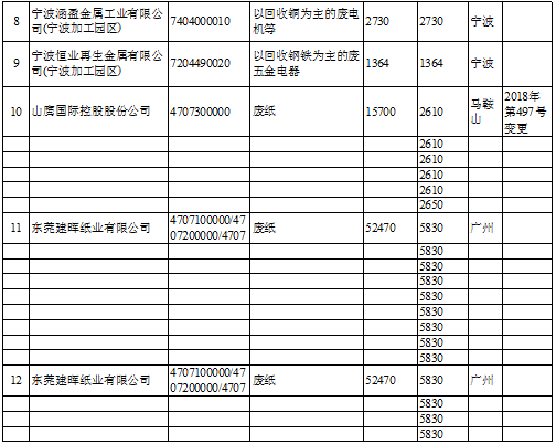 日前中國固廢化學品管理網(wǎng)發(fā)布了《建議批準的限制進口類申請明細表(2018年第24批)》,其中涉及30家企業(yè)具體內(nèi)容如下: