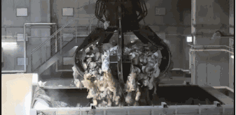 機(jī)械手把垃圾混合均勻后,可燃的垃圾被大爪子抓起來(lái)放進(jìn)燃燒爐。