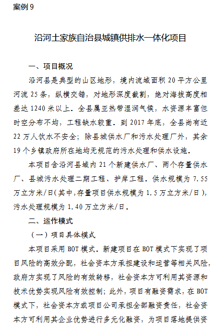 為規(guī)范有序推進我省PPP模式,充分發(fā)揮樣板工程典型案例的示范、引領和帶動作用,形成規(guī)范推進PPP的良好預期,為下一步健康推進PPP模式打下堅實基礎。現(xiàn)將各地各有關部門報來的典型案例予以印發(fā),供各地參考借鑒。