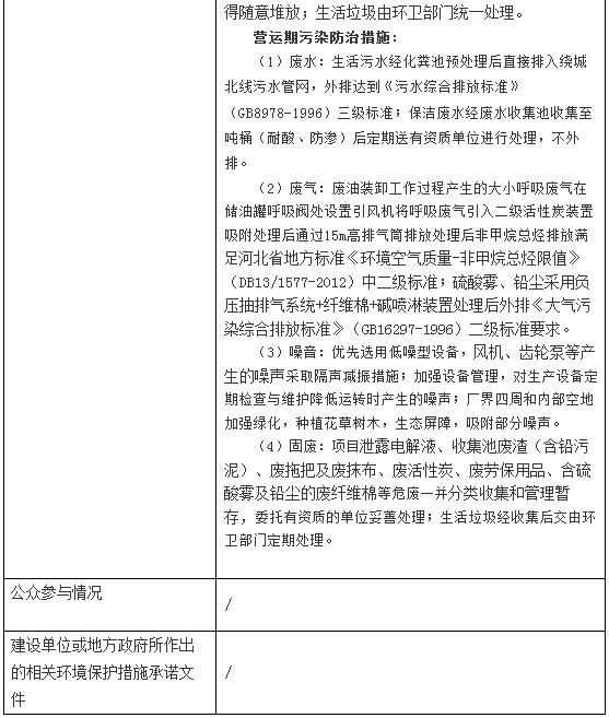 年回收、倉儲廢礦物油10000t、廢舊鉛酸蓄電池50000t建設(shè)項目環(huán)境影響報告表擬審批公示