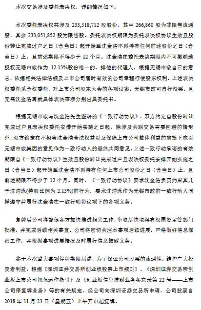中金環(huán)境11月22日晚間公告,公司實際控制人沈金浩擬將1.28億股股份(占公司總股本的6.65%)轉(zhuǎn)讓給無錫市政,轉(zhuǎn)讓價格為4.42元/股,交易作價5.65億元。此外,沈金浩擬通過表決權(quán)委托方式將剩余股份中2.33億股股份對應(yīng)的表決權(quán)委托給無錫市政,占公司總股本的12.13%。交易完成后公司控股股東將變更為無錫市政,實際控制人將變更為無錫市國資委。公司股票將于11月23日復(fù)牌。