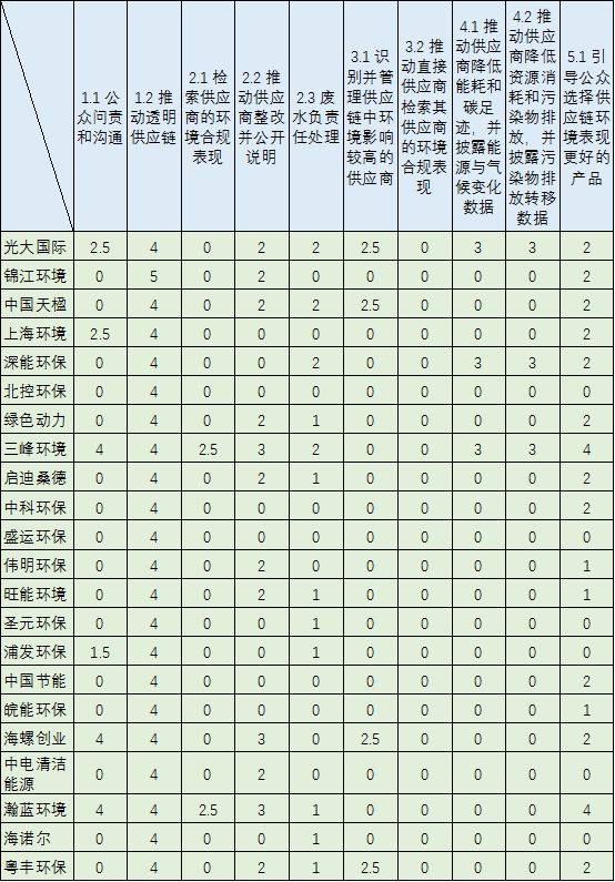 本期CITI評分均以垃圾焚燒品牌信息公開渠道所獲得的數(shù)據(jù)作為依據(jù),旗下的垃圾焚燒廠作為一級供應商,評價標準涵蓋5個方面(溝通與透明、合規(guī)性與整改行動、延伸綠色供應鏈、節(jié)能減排、推動公眾綠色選擇),層層遞進,在有效量化評價的同時,也是可供品牌參考的行動路線。