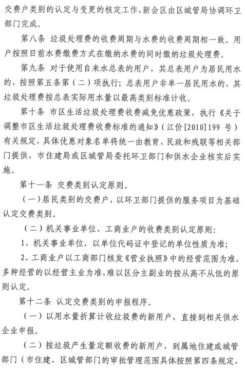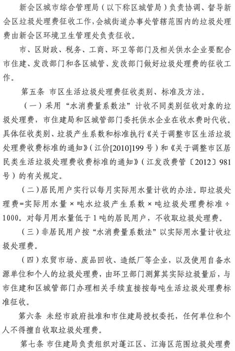 附件:《關(guān)于市區(qū)生活垃圾處理費征收管理辦法》(江建【2015】384)