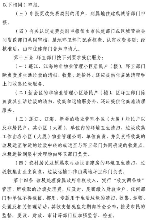 日前, 廣東江門市住建局發(fā)布了關(guān)于征求對《關(guān)于市區(qū)生活垃圾處理費征收管理辦法》修訂意見的公告,詳情如下: