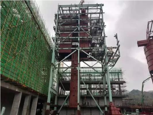 2、煙氣處理:收塵器頂部電動(dòng)葫蘆吊架組拼吊裝就位;反應(yīng)塔直筒焊接,頂部電動(dòng)葫蘆吊架吊裝就位;消石灰平臺(tái)鋼構(gòu)安裝;灰?guī)熘麂摌?gòu)安裝,樓梯鋼架安裝;