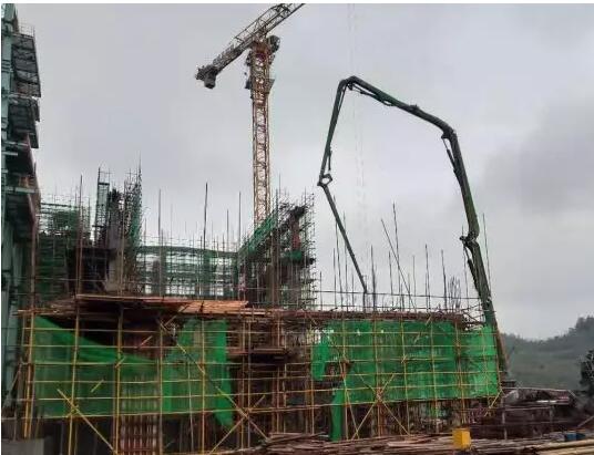 5、汽機(jī)房一期13.5米以上混凝土澆筑完,二期4米層混凝土澆筑完;門廳二層混凝土澆筑完;