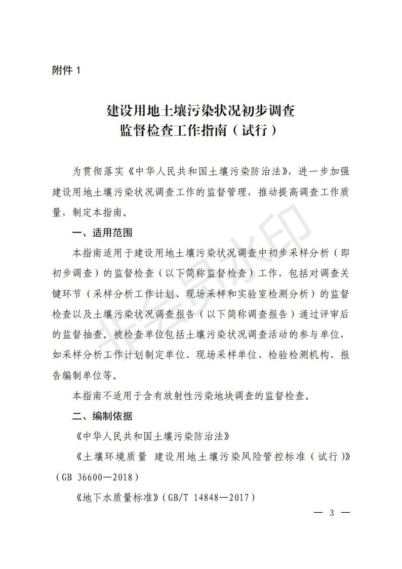 近日,生態(tài)環(huán)境部公布了《建設(shè)用地土壤污染狀況初步調(diào)查監(jiān)督檢查工作指南(試行)》《建設(shè)用地土壤污染狀況調(diào)查質(zhì)量控制技術(shù)規(guī)定(試行)》。詳情如下:關(guān)于發(fā)布《建設(shè)用地土壤污染狀況初步調(diào)查監(jiān)督檢查工作指南(試行)》《建設(shè)用地土壤污染狀況調(diào)查質(zhì)量控制技術(shù)規(guī)定(試行)》的公告 為貫徹落實《中華人民共和國土壤污染...