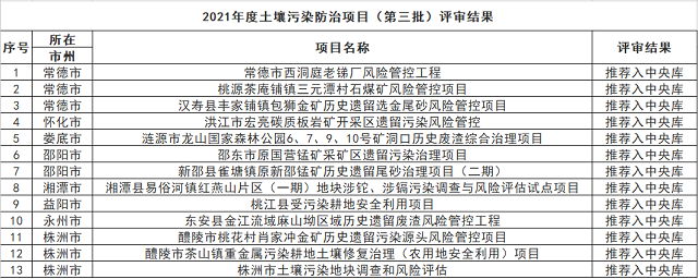 湖南省2021年度土壤污染防治項(xiàng)目(第三批)、地下水污染防治項(xiàng)目(第二批)評審結(jié)果公示
