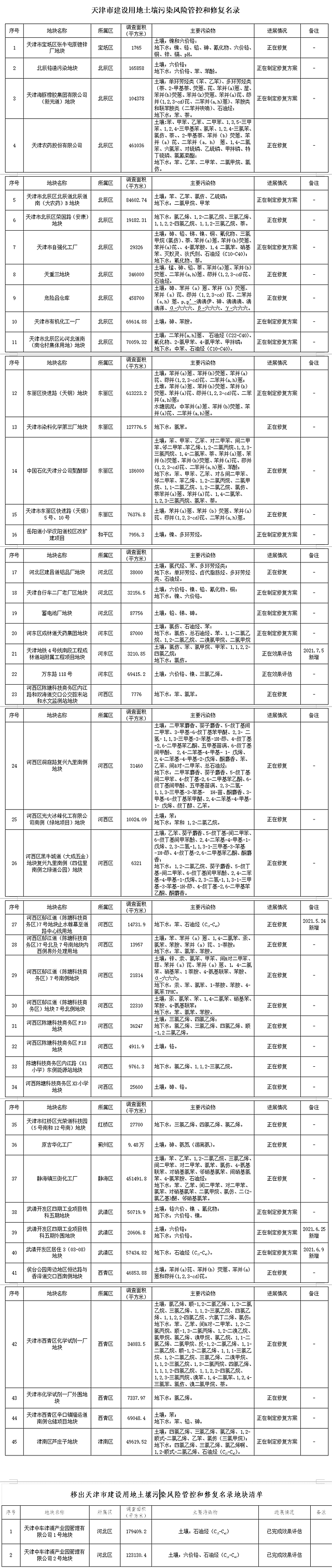 天津更新發(fā)布《天津市建設(shè)用地土壤污染風(fēng)險(xiǎn)管控和修復(fù)名錄》的通知