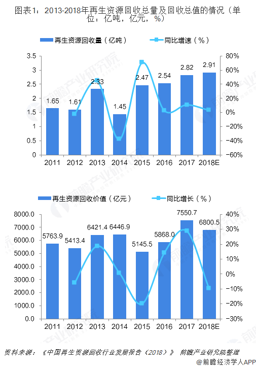 近年來(lái),我國(guó)再生資源回收行業(yè)增長(zhǎng)率在低位運(yùn)行,市場(chǎng)呈現(xiàn)低迷態(tài)勢(shì),不過(guò),伴隨著再生資源領(lǐng)域政策的開始完善和盈利模式的持續(xù)創(chuàng)新,行業(yè)拐點(diǎn)漸顯。細(xì)分領(lǐng)域方面,電子電器產(chǎn)品受益于政策支持迎來(lái)報(bào)廢高峰期;廢汽車行業(yè)發(fā)展限制較多。 十三五時(shí)期,行業(yè)低迷態(tài)勢(shì)逐步改善 2013-2017年,再生資源回收量和回收總值...