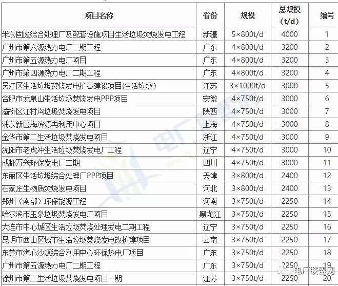 2019年中國100個擬在建大型生活垃圾焚燒發(fā)電廠項目一覽,2019年全國約600個大中小型生活垃圾焚燒發(fā)電廠項目擬在建,是垃圾焚燒發(fā)電項目最多的一年,單個項目投資約2億~20億,有關(guān)項目詳見項目資料匯編,附2019垃圾焚燒發(fā)電廠項目供應(yīng)商名錄。2019中國垃圾焚燒發(fā)電項目供應(yīng)商名錄: