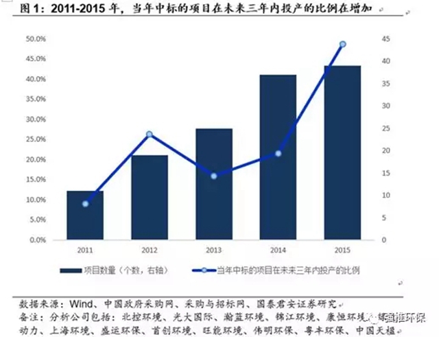 上市公司垃圾焚燒項(xiàng)目開工加速,投產(chǎn)周期縮短 1)在對上市公司所有在手垃圾焚燒項(xiàng)目進(jìn)行統(tǒng)計(jì)的基礎(chǔ)上,我們對項(xiàng)目從中標(biāo)/簽約到投產(chǎn)的時(shí)間(投產(chǎn)周期)做了進(jìn)一步分析。我們選取的樣本包括北控環(huán)境、光大國際、瀚藍(lán)環(huán)境、錦江環(huán)境、康恒環(huán)境、綠色動(dòng)力、上海環(huán)境、盛運(yùn)環(huán)保、首創(chuàng)環(huán)境、旺能環(huán)境、偉明環(huán)保、粵豐環(huán)保、中...