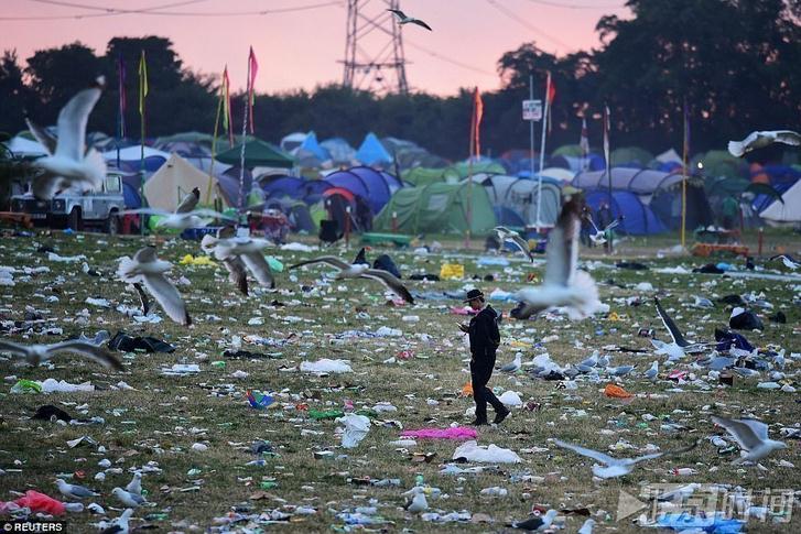 據(jù)《每日郵報》報道,當(dāng)?shù)貢r間25日晚,伴隨著艾德?希蘭的演出,一連喧囂了5天的英國格拉斯頓伯里落下帷幕。連日來飲酒狂歡的樂迷收拾好他們的露營行李準(zhǔn)備打道回府,留下整個場地被垃圾所覆蓋。據(jù)悉,清理這些垃圾需要花費78萬5千英鎊。圖:音樂節(jié)結(jié)束,著名的沃西農(nóng)場被垃圾所覆蓋圖:樂迷在狂歡之后離開,留下成堆...