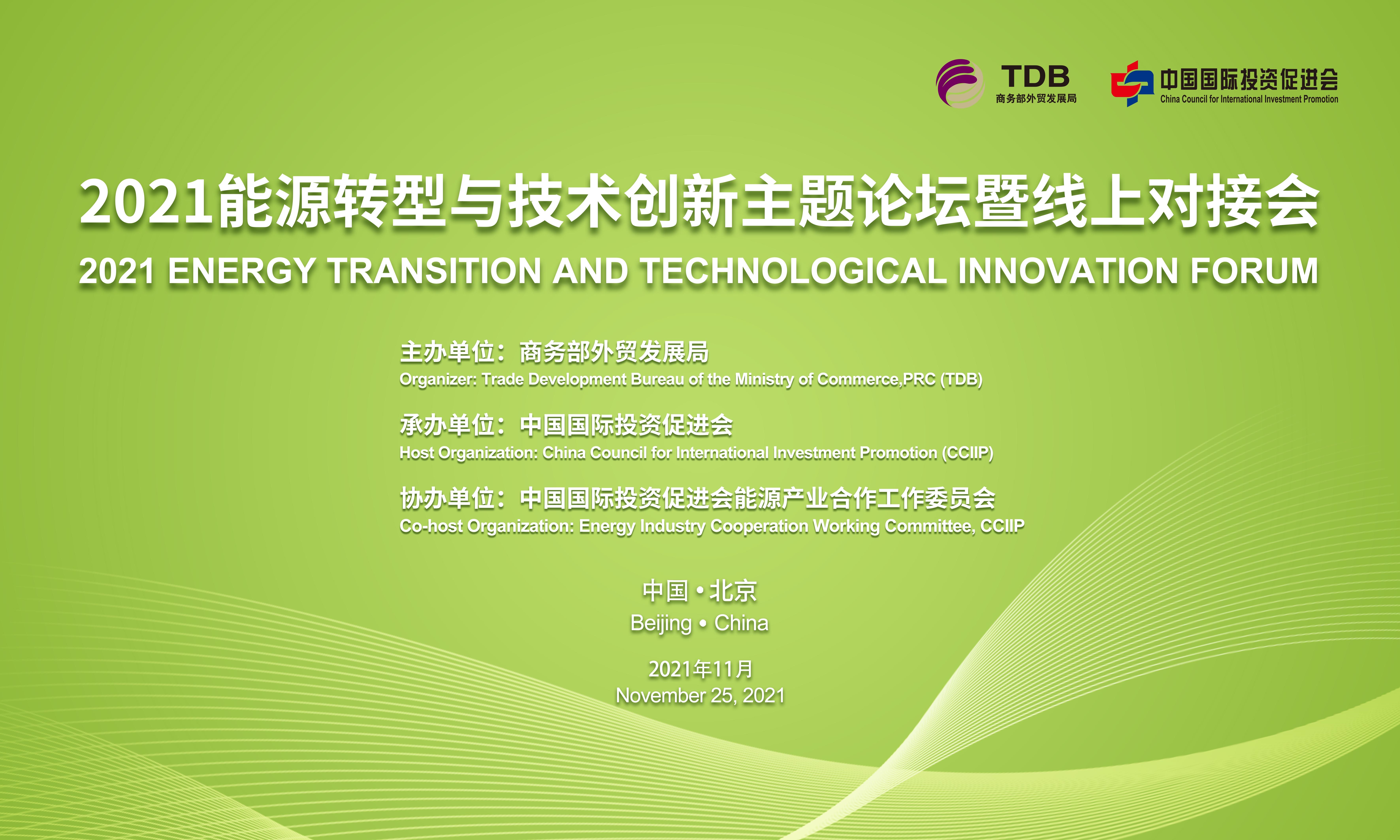 2021年11月25日下午,由商務部外貿發(fā)展局主辦、中國國際投資促進會承辦、中國國際投資促進會能源產業(yè)合作工作委員會協(xié)辦的“2021年能源轉型與技術創(chuàng)新主題論壇暨線上對接會”成功舉辦。本次論壇以“能源轉型與技術創(chuàng)新”為主題,聚焦“雙碳目標&...