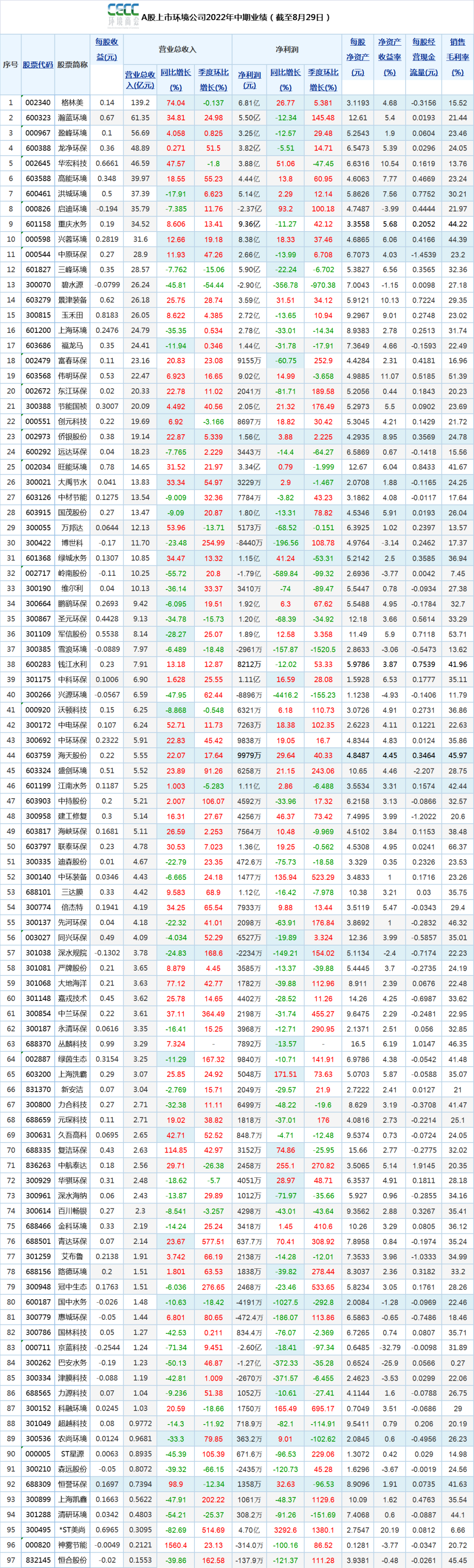 幾家歡喜幾家愁,在內(nèi)外環(huán)境艱難的情況下,統(tǒng)計(jì)范圍內(nèi),高能環(huán)境、興蓉環(huán)境、景津裝備、僑銀股份、大禹節(jié)水、盛劍環(huán)境、海天股份、偉明環(huán)保、節(jié)能國禎、格林美等25家企業(yè)營收凈利實(shí)現(xiàn)雙增長。其中,高能環(huán)境上半年共實(shí)現(xiàn)營收39.97億元,同比增長18.55%,歸母凈利潤4.44億元,同比增長13.80%。報(bào)告期...