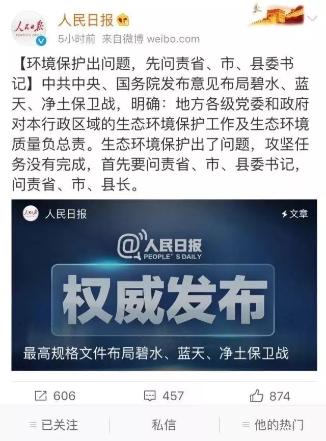 昨日,人民日報發(fā)布《這件事,習近平視為“根本大計”》、《環(huán)境保護腰桿硬起來》、《中央環(huán)保督察嚴禁“表面整改”》等數(shù)篇文章。而近日,中央紀委則首次集中通報了生態(tài)責任追究的典型問題。在第47個世界環(huán)境日,以如此猛烈的方式表達對環(huán)境的關(guān)注,無疑在釋放嚴肅查處破壞環(huán)境違紀違法行為的強烈信號,表明了中央對治理...
