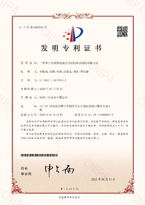 近日,依托中環(huán)水務(wù)牽頭承擔(dān)的2020年度集團(tuán)公司重大科技創(chuàng)新項(xiàng)目《智能水廠整體工藝方案》與《生態(tài)型村鎮(zhèn)污水處理技術(shù)工藝包》的技術(shù)成果,“一種基于多源數(shù)據(jù)融合分析的水泵故障診斷方法”和 “一種蠕蟲床化糞池”兩項(xiàng)發(fā)明專利獲得國家知識產(chǎn)權(quán)局授權(quán)。 &ldqu...