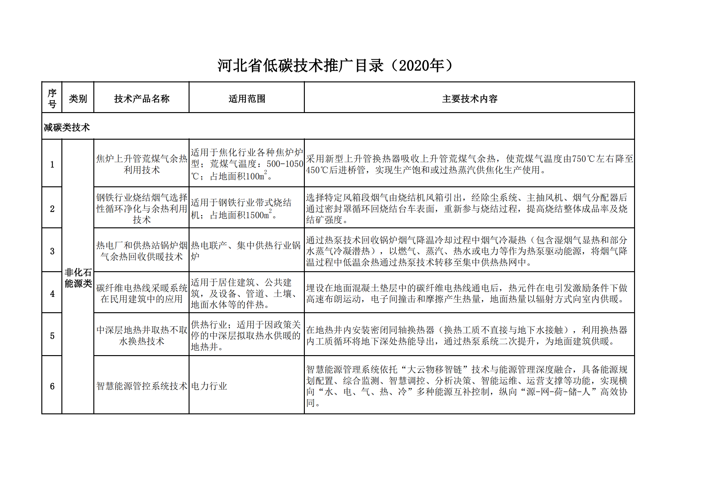 為貫徹落實(shí)《河北省應(yīng)對(duì)氣候變化“十三五”規(guī)劃》《河北省“十三五”控制溫室氣體排放工作實(shí)施方案》相關(guān)要求,加快我省低碳技術(shù)的推廣應(yīng)用,進(jìn)一步減少溫室氣體排放,促進(jìn)我省控制溫室氣體排放行動(dòng)目標(biāo)實(shí)現(xiàn),我廳組織編制了《河北省低碳技術(shù)推廣目錄(2020年)》,現(xiàn)...