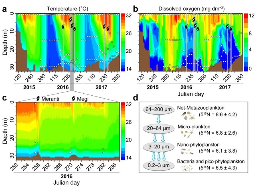 在當(dāng)前氣候變化背景下,預(yù)計(jì)全球熱帶和亞熱帶地區(qū)臺(tái)風(fēng)事件(也稱為熱帶氣旋或颶風(fēng))的強(qiáng)度將持續(xù)增加,由此帶來(lái)的強(qiáng)風(fēng)和暴雨災(zāi)害事件將造成當(dāng)?shù)亟?jīng)濟(jì)和生態(tài)系統(tǒng)功能的損失。深水型水庫(kù)和湖泊具有重要的科學(xué)和社會(huì)服務(wù)價(jià)值,這些水體的一個(gè)典型特征是水體上下分層,例如表層水體(湖上層)藻類較多和底層水體(湖下層)營(yíng)養(yǎng)豐...