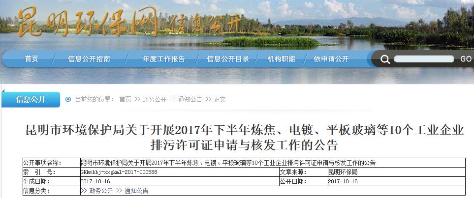近日昆明環(huán)保局發(fā)布了《昆明市環(huán)境保護(hù)局關(guān)于開展2017年下半年煉焦、電鍍、平板玻璃等10個(gè)工業(yè)企業(yè)證申請(qǐng)與核發(fā)工作的公告》各縣(市)、區(qū)環(huán)境保護(hù)局,各國家級(jí)、省級(jí)開發(fā)(度假)園區(qū)環(huán)境保護(hù)局,相關(guān)企業(yè):根據(jù)《國務(wù)院辦公廳關(guān)于印發(fā)控制污染物排放許可制實(shí)施方案的通知》(國辦發(fā)〔2016〕81號(hào))、《固定污...