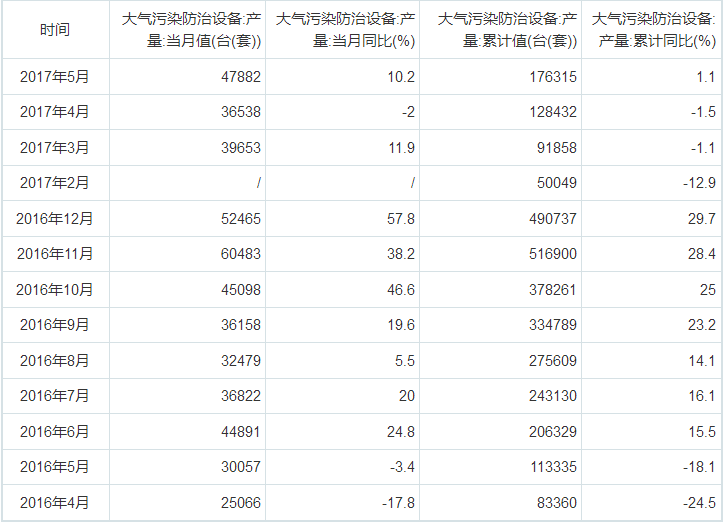 今年是“”第一階段的收官年。在國(guó)家政策與一系列舉措的高壓下,我國(guó)大氣污染治理情況取得了不小的成績(jī),環(huán)保裝備也迎來(lái)難得發(fā)展良機(jī),2021年產(chǎn)量將達(dá)到64.4萬(wàn)臺(tái)。數(shù)據(jù)顯示,2017年5月我國(guó)產(chǎn)量47882臺(tái),當(dāng)月同比上漲10.2%,1-5月累計(jì)產(chǎn)量176315臺(tái),累計(jì)同比上漲1.1%。預(yù)計(jì)2017年中...