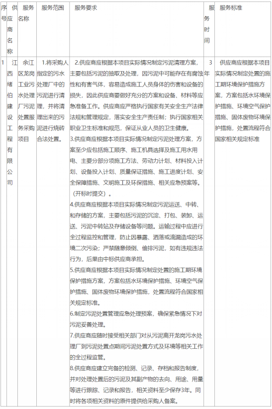 一、項目編號:JXHD-2021-YT011(招標文件編號:JXHD-2021-011) 二、項目名稱:余江區(qū)龍崗工業(yè)污水處理廠污泥處置服務采購項目 三、中標(成交)信息 供應商名稱:江西緒伯建設工程有限公司 供應商地址:江西省南昌市灣里區(qū)國家森林公園 中標(成交)金額:109.5000000(萬元...