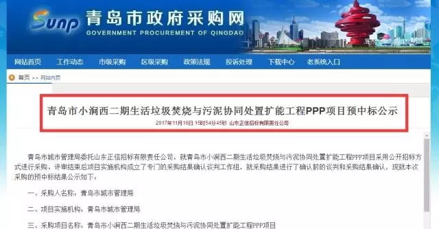 2017年11月16日,南陽(yáng)靜脈產(chǎn)業(yè)園環(huán)保能源熱電聯(lián)產(chǎn)PPP項(xiàng)目、青島市小澗西二期生活垃圾焚燒與污泥協(xié)同處置擴(kuò)能工程兩座垃圾焚燒發(fā)電項(xiàng)目同日發(fā)布中標(biāo)信息,預(yù)中標(biāo)單位均為康恒環(huán)境。來(lái)源:政府采購(gòu)網(wǎng)總投資約4.2億元!預(yù)中標(biāo)青島小澗西二期垃圾焚燒與污泥協(xié)同處置擴(kuò)能工程11月16日,據(jù)青島市公共資源交易中...