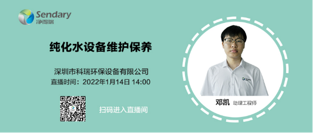 良好的維護(hù)保養(yǎng)是純化水設(shè)備長(zhǎng)期穩(wěn)定運(yùn)行及延長(zhǎng)設(shè)備使用壽命的保障。2022年1月14日14:00,凈得瑞帶來的《純化水設(shè)備維護(hù)保養(yǎng)》直播分享,幫助大家快速了解純化水設(shè)備維護(hù)保養(yǎng)工作內(nèi)容以及如何有序開展工作。圖一 《純化水設(shè)備維護(hù)保養(yǎng)》(點(diǎn)擊圖片進(jìn)入直播間) 純化水設(shè)備是保障生物制藥、醫(yī)療器械等行業(yè)用水...