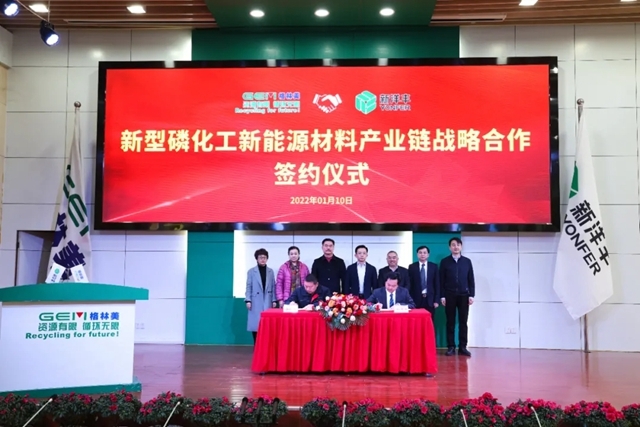2022年1月10日,格林美股份有限公司(以下簡(jiǎn)稱“格林美”)與新洋豐農(nóng)業(yè)科技股份有限公司(以下簡(jiǎn)稱“新洋豐”)在格林美荊門園區(qū)正式簽署《磷資源化工新能源材料產(chǎn)業(yè)鏈一體化戰(zhàn)略合作框架協(xié)議》。荊門市人民政府副市長(zhǎng)李文震,市政府副秘書長(zhǎng)傅強(qiáng),鐘祥市市長(zhǎng)楊孟...