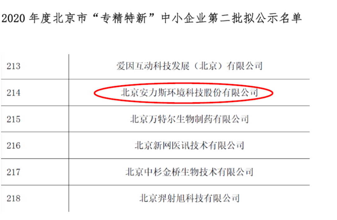 2020年7月,北京市經濟和信息化委員會公示《2020年度北京市“專精特新”中小企業(yè)》第二批名單,北京安力斯環(huán)境科技股份有限公司(以下簡稱“安力斯環(huán)境”)成功入選,被授予2020年度北京市“專精特新”中小企業(yè)稱號。 近日,安力斯...